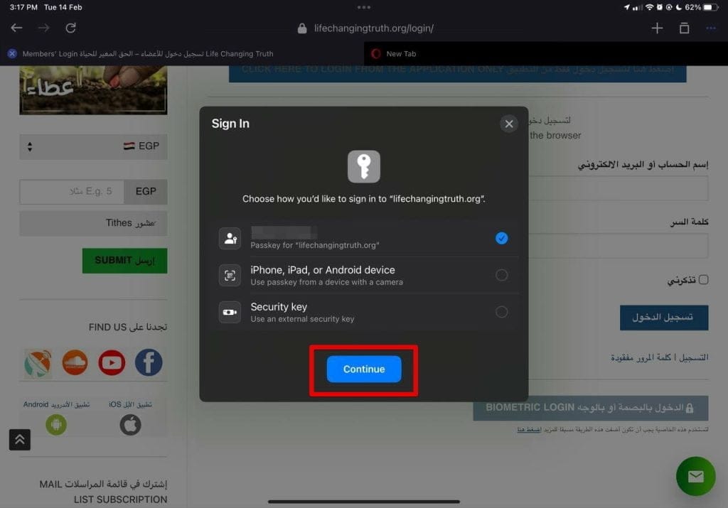 5- لتأكيد تسجيل الدخول اضغط على زر Continue