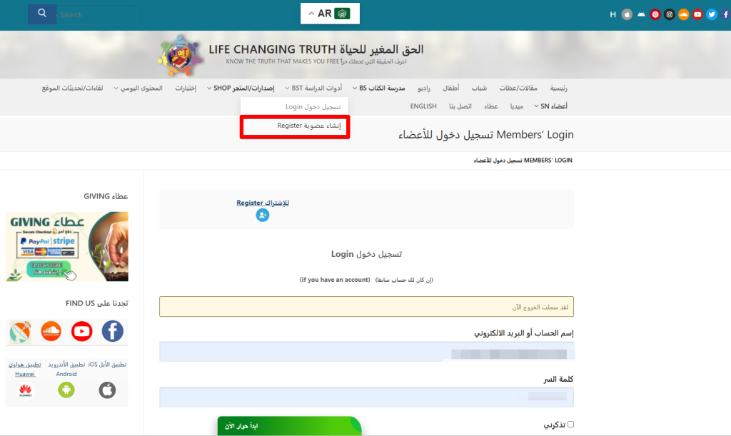 إملأ استمارة الاشتراك من الرابط التالي https://lifechangingtruth.org/register/