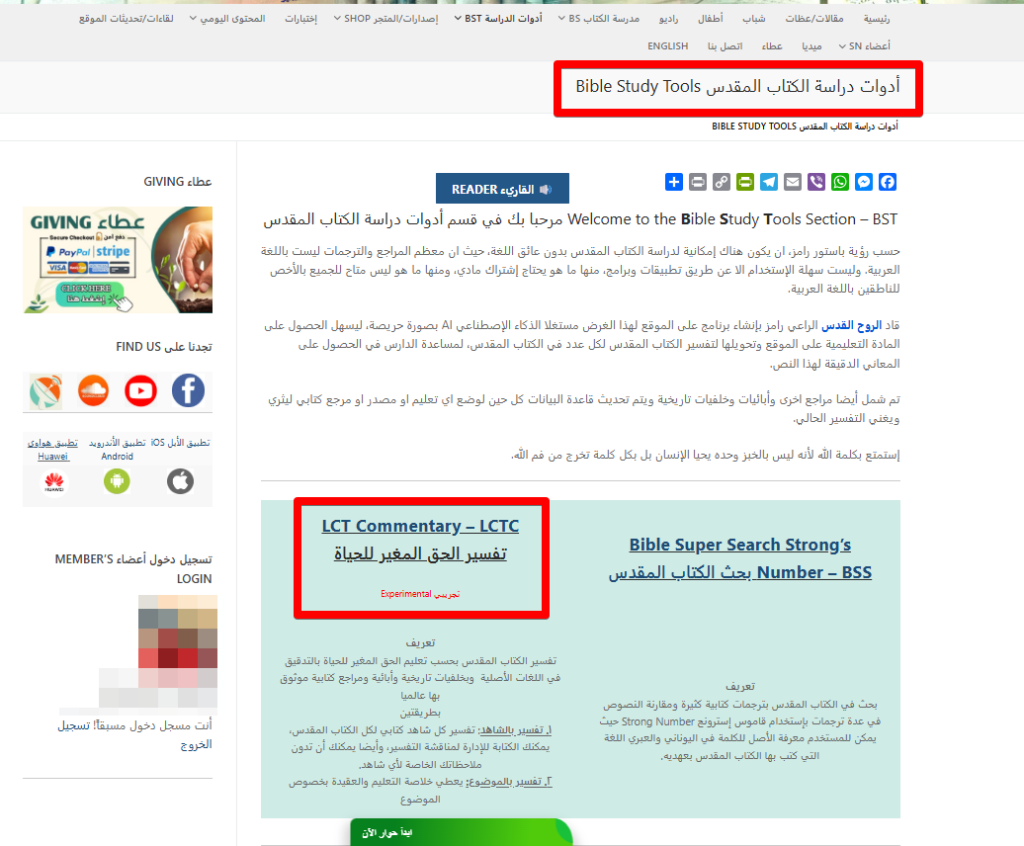 4. سيفتح لك صفحة “أدوات دراسة الكتاب المقدس” ثم تضغط على “تفسير الحق المغير للحياة”