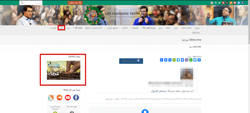 3- يمكنك التوجه إلى صفحة عطاء أو بالضغط على صورة عطاء الموجودة على يسار الصفحة