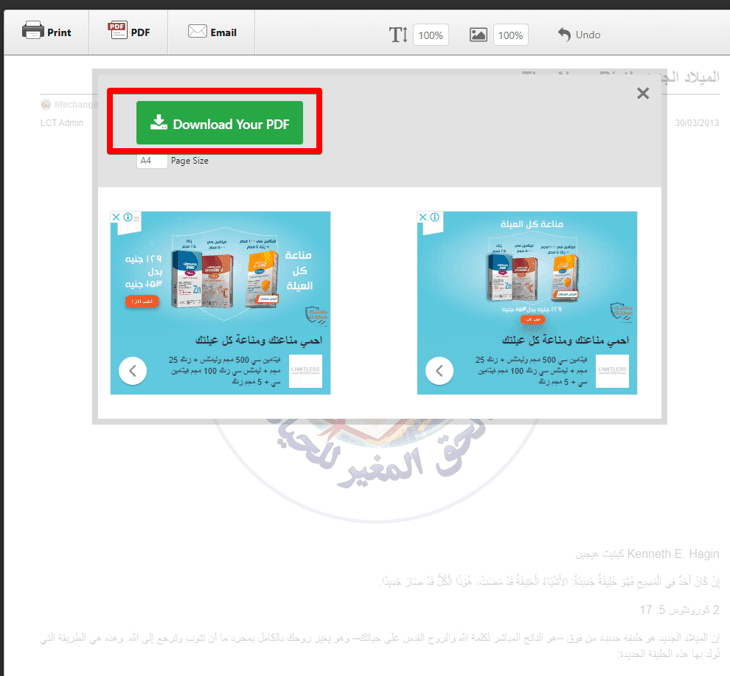 6- أضغط على Download Your PDF لتحميل الملف على تليفونك أو الكمبيوتر الخاص بك.