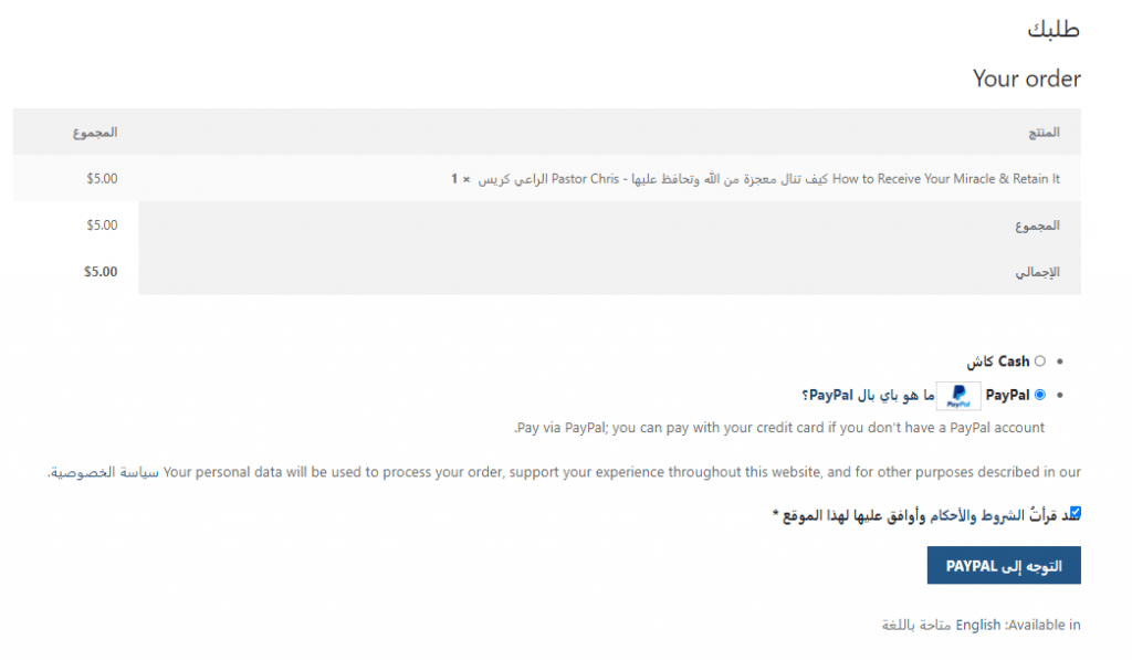 ** في حالة اختيارك طريقة الدفع PayPal سيتم توجيهك إلى الصفحة الخاصة به لإدخال البيانات الخاصة به وأكمل الخطوات.